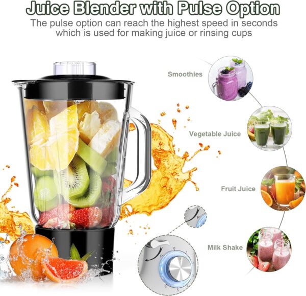 🥗6 SPEEDS & PULSE OPTION: 6+P Speeds options ranging from low to high, with precise control and planetary mixing action at each setting which can meet all your food preparation needs and ensure perfect and professional mixing effect every time. Additional pulse option can reach the highest speed in seconds which is used for rinsing the juicer cups or making smoothies.