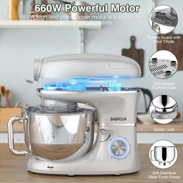 With the Stand Mixer, BABROUN 6 IN 1, baking projects are taken to new heights. The mixer’s superior performance and functionality enable bakers to achieve perfect textures, flavors, and consistency in their creations. From delicate cake batters to hearty bread dough, this mixer handles it all with ease. Its precision and efficiency help bakers streamline their process, allowing for more creativity and experimentation in the kitchen.