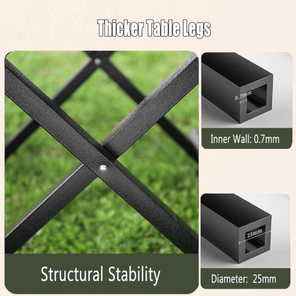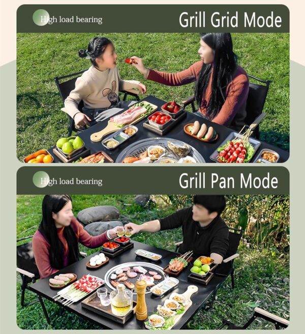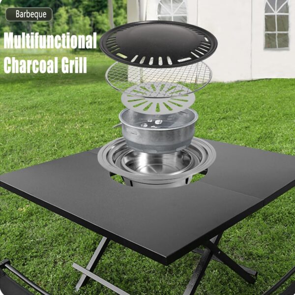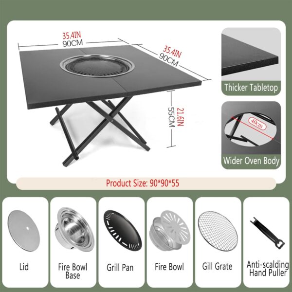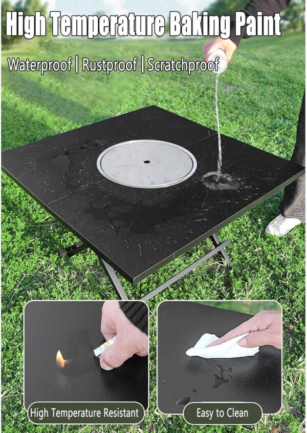 Beautiful & Humanized Design Our camping charcoal grill table comes with a removable stainless steel table cover, when you are not using the stove you can close the cover and take a regular square table with you. and a built-in 2 inch umbrella hole at the center of the table fits multiple patio umbrellas(not included) for sun-shading and cool relaxation. Preferred in summer, available in all seasons.