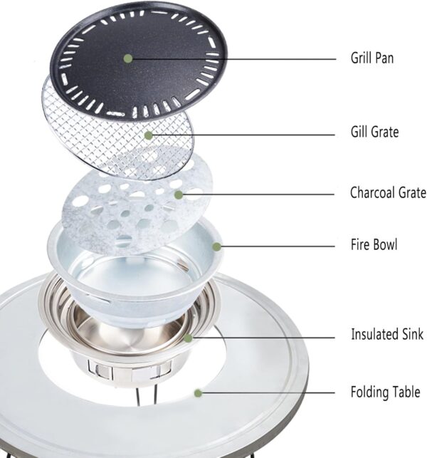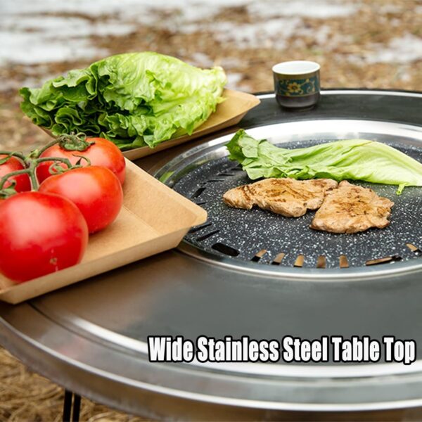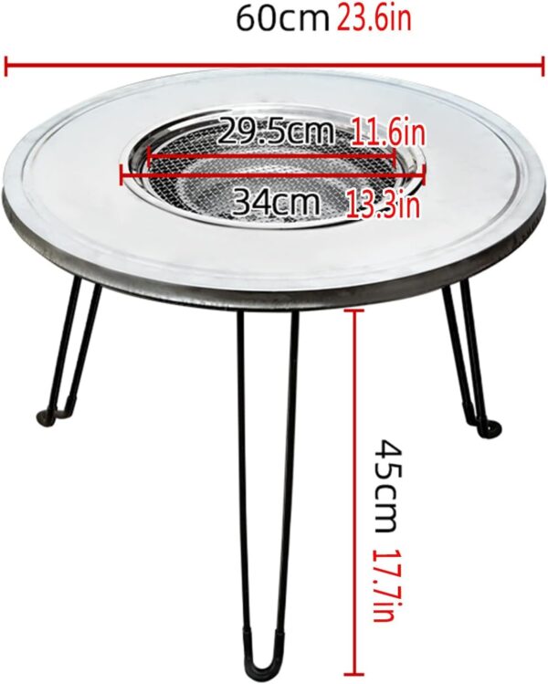 If you love a smoky grilled flavor in meats, vegetables, etc., this simple lightweight BBQ charcoal grill will allow you to savor delicious foods ANYWHERE & ANYTIME!! Get together with friends and/or family for outdoor smoker cooking, BBQs, picnics, tailgating, camping or a night on the patio, parties, park, beach, etc.Features:1. This round barbecue grill is made of durable stainless steel which is resistant to high temperature and no deformation.2. With insulated sink, adding water before use prevents burns and reduces fumes.3. Stable Table Legs: With 3 stable table legs, lasting for long time4. Can be assembled and disassembled quickly for easy cleaning5. Convenient anti-scalding hand puller for safer lifting and controllingName: Outdoor Garden Fire PitColour:SilverMaterial: Stainless steelSize: L60*W60*H45/L23.6*W23.6*H17.5(cm/in)Applicable Number of Persons: 4Manual measurement, please allow slight errors on size.