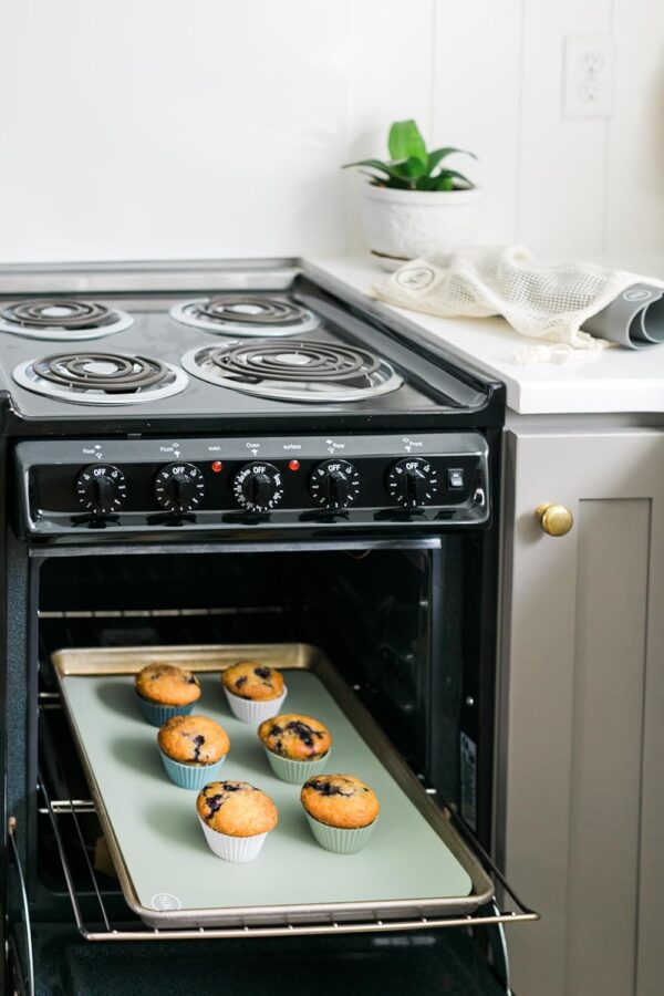The Silicone Kitchen Silicone Oven Baking Mats come in two stylish color options – green and gray. This allows you to choose the one that best fits your kitchen decor or personal style.