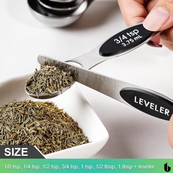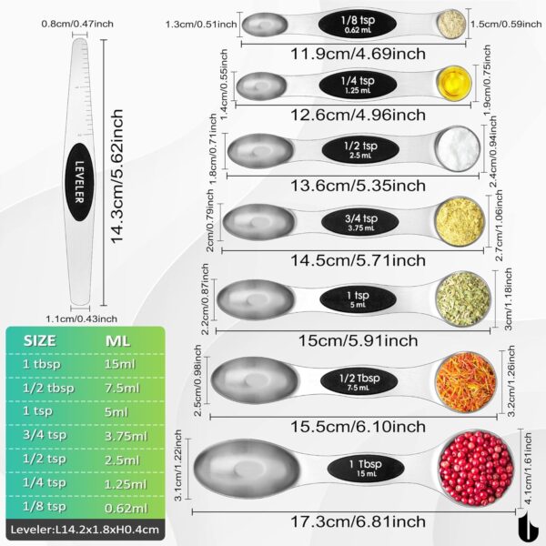 Urbanstrive Magnetic Measuring Spoons Set Stainless Steel, Dual Sided for Liquid Dry Food, Measuring Cups Spoons Set Fits in Spice Jar, Kitchen Gadgets, Cooking Utensils Set, Including Leveler, Silver