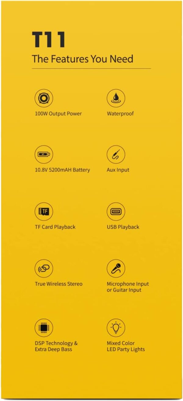 The sound produced by the high-performance W-KING T11 pro, delivering a maximum power of 100 watts, intensifies every bass beat, making it more detailed and clear. With ultra-deep bass, rich mids, and highs blend together to create an intoxicating frenzy, making you feel truly like the bass-buster – the king of the party! Take your party to the highest level!