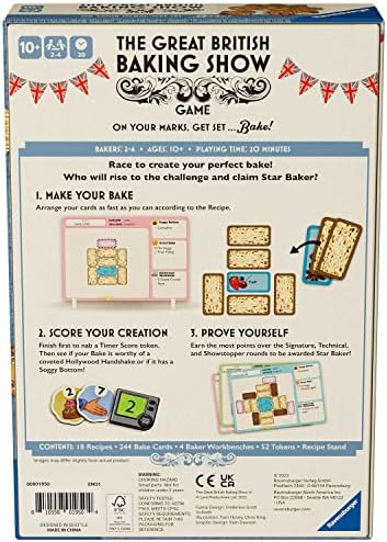Overall, Ravensburger The Great British Baking Show Game is a must-have for anyone who loves baking and board games. Its exciting gameplay, immersive experience, educational value, and family-friendly appeal make it a great addition to any game collection. So gather your ingredients, preheat the oven, and get ready to show off your baking skills in this fun and competitive game.