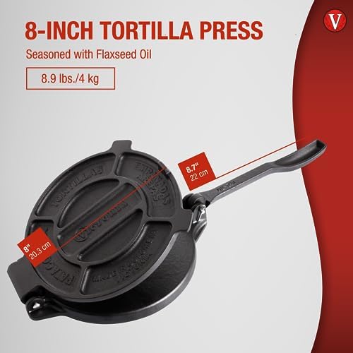 SMALL OR LARGE TORTILLA PRESS: The Victoria tortilla press is made with natural materials and is easy to maintain. It’s available in multiple sizes, and each press is restaurant quality to ensure perfect tortillas every time. Give your cooking an upgrade by using cast iron cookware.